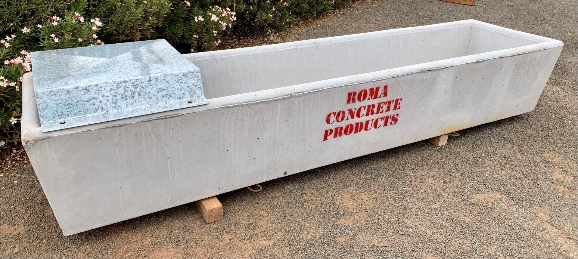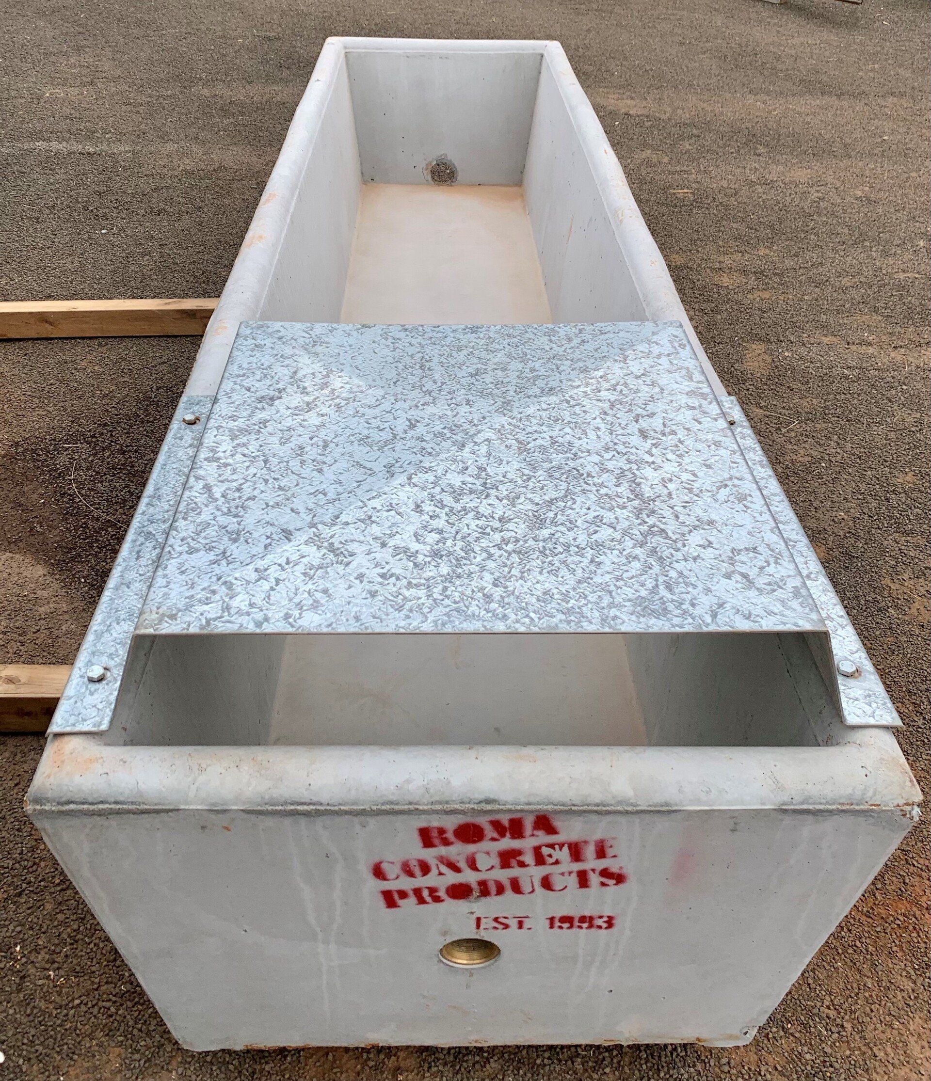 One of our most popular cattle troughs. Higher in the walls than our other stock troughs, this long trough is an an excellent choice for grown cattle with large volume.