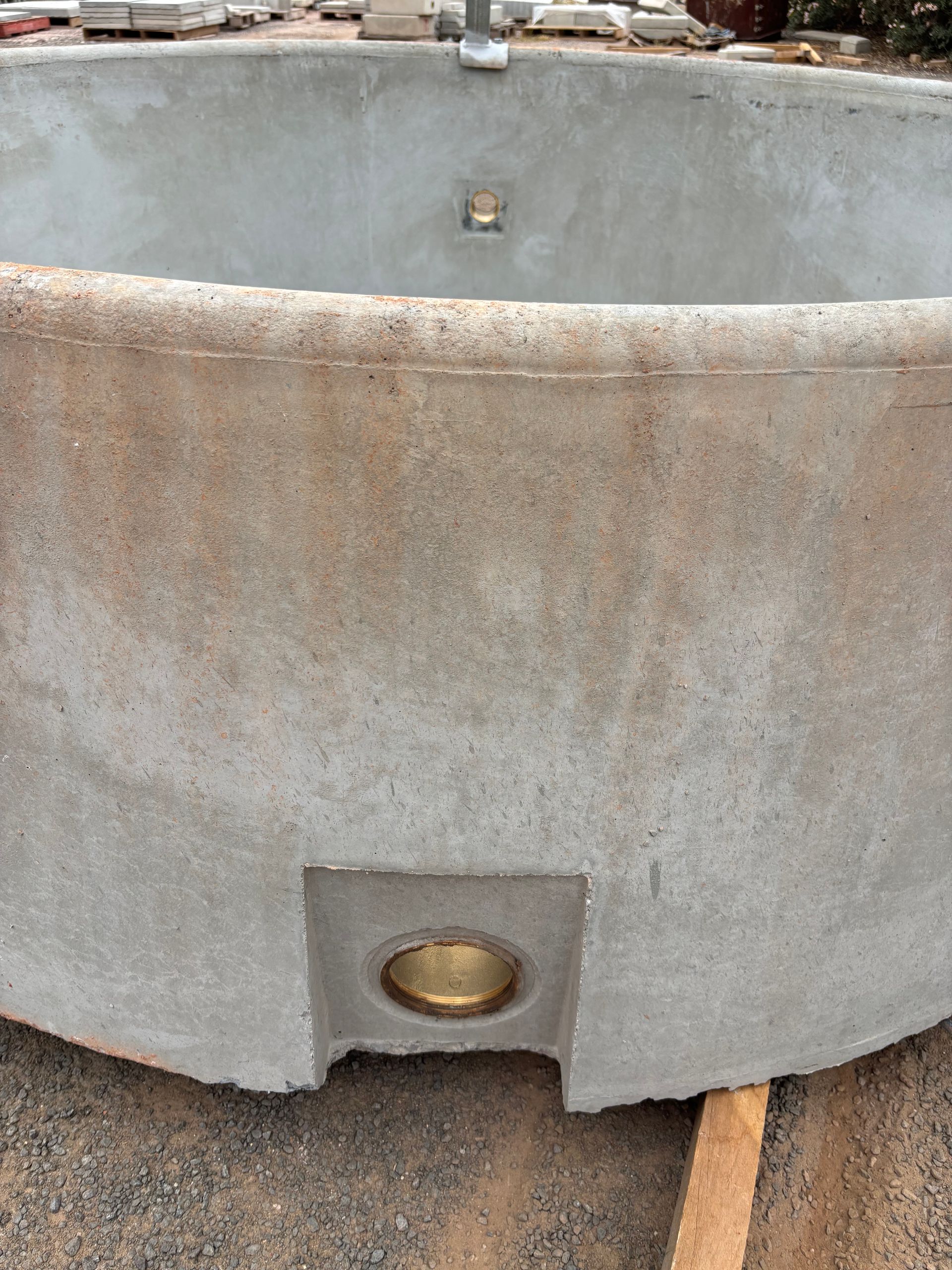 A solid, well build, all-purpose round stock trough. Recessed inlet square to ground for ease of plumbing.