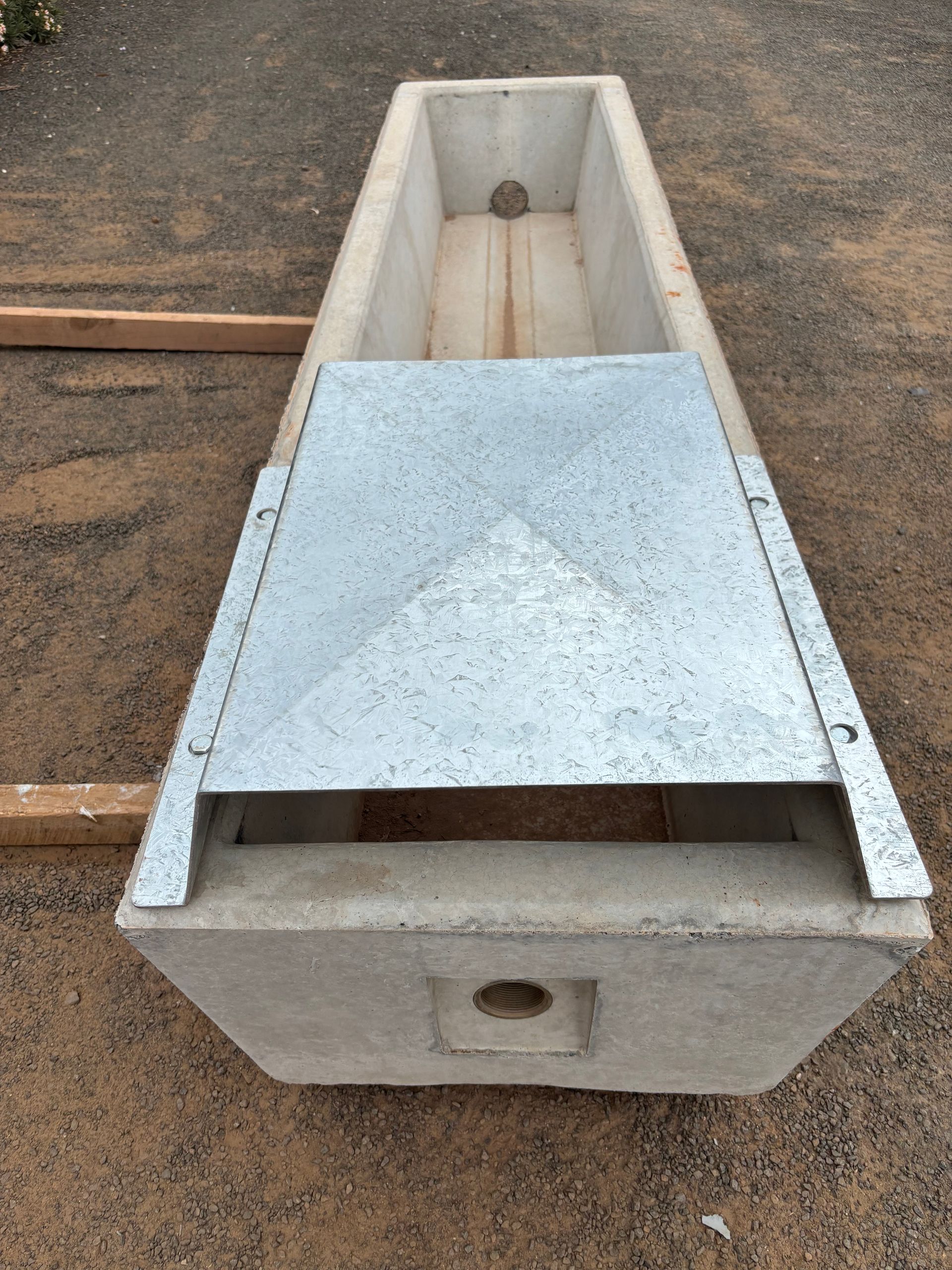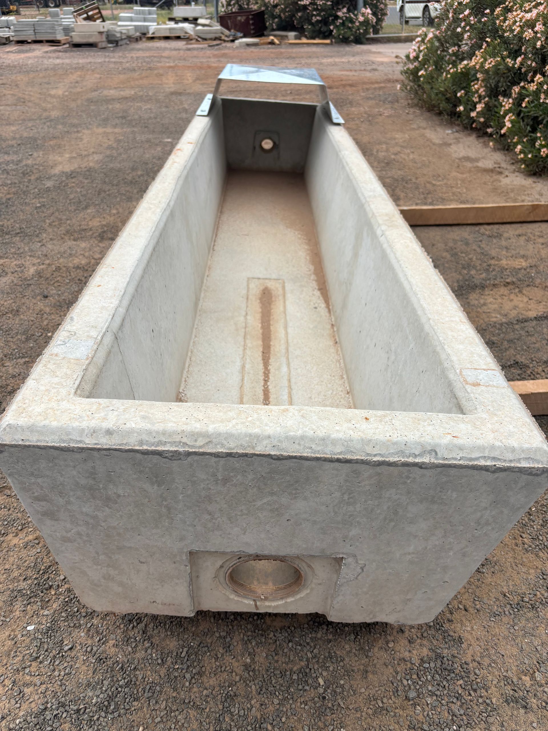 A lower walled trough suitable for sheep or cows and calves. Recessed inlet square to ground for ease of plumbing.