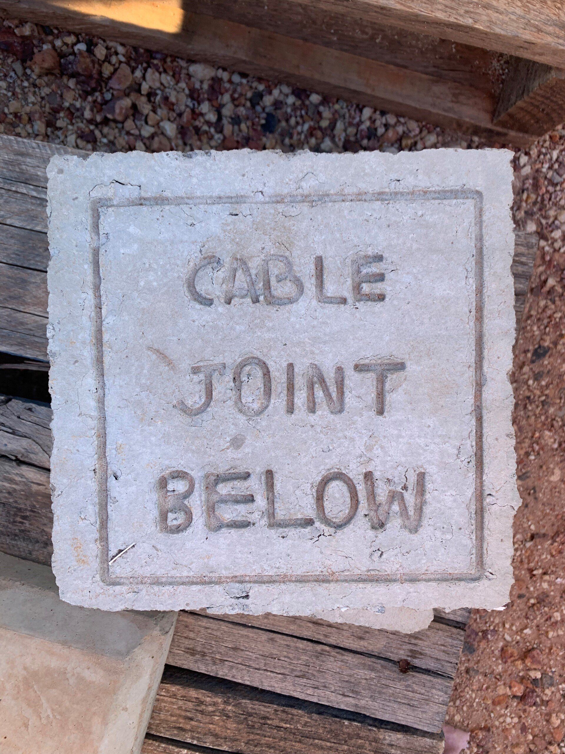 Identifier blocks stamped with "Cable Joint Below" or "Electrical Cable Joint Below"