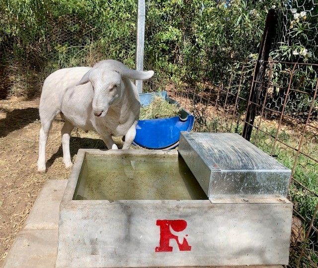 A specially designed dog/poddy water trough. Sturdy brass valve and generous capacity enables this little trough to be used for poddy sheep and calves as well as dogs. The inlet and outlet are at the same end, protected by the guard, which allows for plumbing to be outside the pens if desired. Designed with the ability to be banked along a run of dog pens, with outlets plumbed away from the pen flooring.